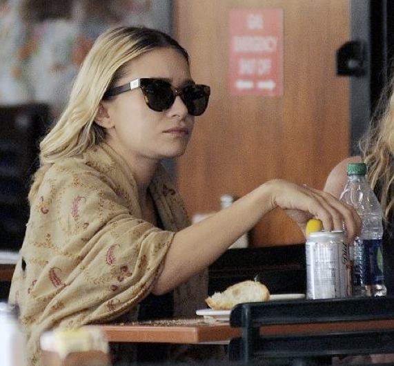 Ashley Olsen has been spotted having brunch in New York in her favourite The Row by Linda Farrow shades, the tortoiseshell cat-eye wayfarers.