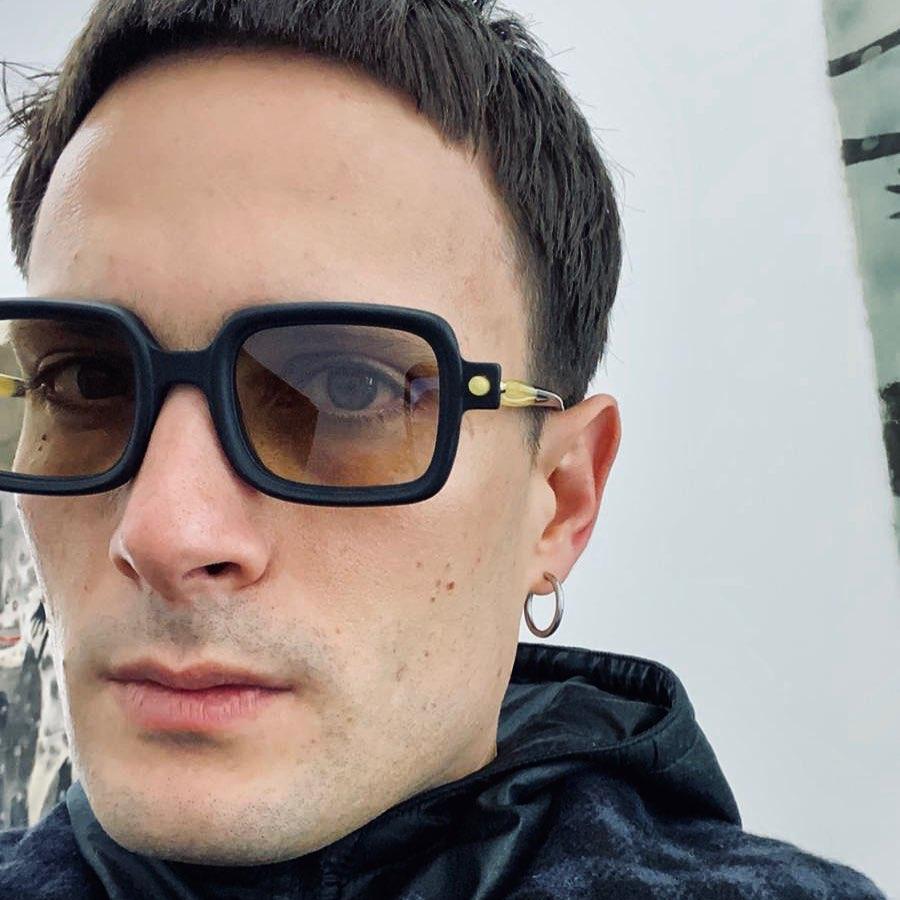 Bill Kouligas, DJ, curator and legendary founder of the experimental & multi-disciplinary record label PAN, spotted wearing a pair of KUBORAUM Mask P2 sunglasses.