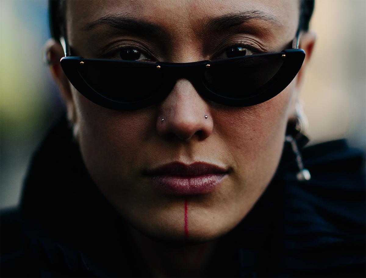 Fa Empel, the designer behind Pawaka rocks a pair of sunglasses of her own design in a street style aparition snapped by Adam Katz from le21eme.com