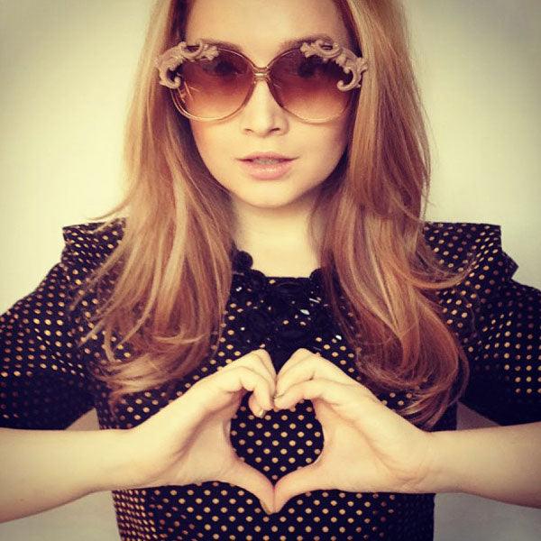 Ioana Liliana Gheorghe of Fashenzine.com is sending all of her love in those gorgeous oversized shades signed MOO Eyewear! We love how the colour of the frames matches her hair, nicely done!