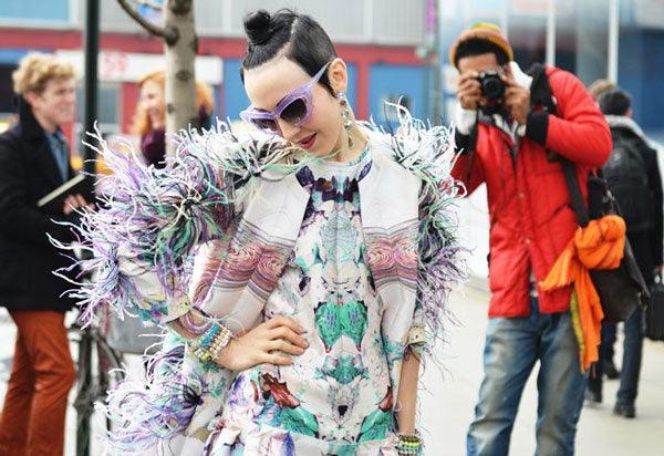 Michelle Harper regularly trots the globe in everything from feathered fascinators to colorful bug-eyed sunglasses. She chose Prabal Gurung for the New York Fashion Week. We love this mix. How about you?