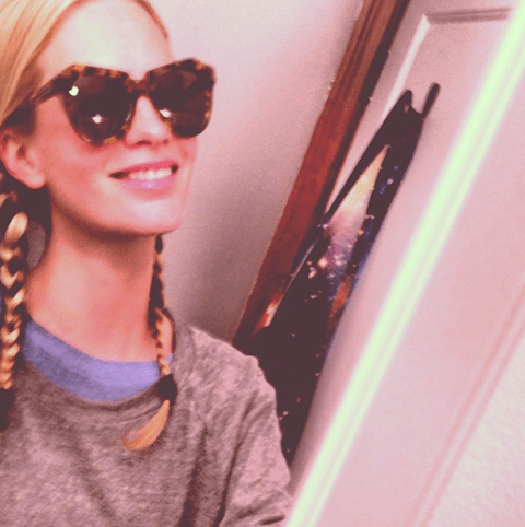 Poppy Delevingne snapped herself looking super cute in the classic Karen Walker Eyewear Number One frames in Crazy Tort.