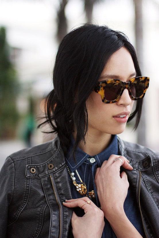 In line with the 2013 geometric shapes trend, Rachel Nguyen of ThatsChic.net is wearing the very cool Karen Walker Number Two shades, which look absolutely fantastic on her!