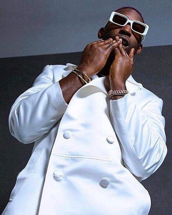 Musician Tineh Tempah spotted in a pair of white narrow KALEOS Barbarella sunglasses.
