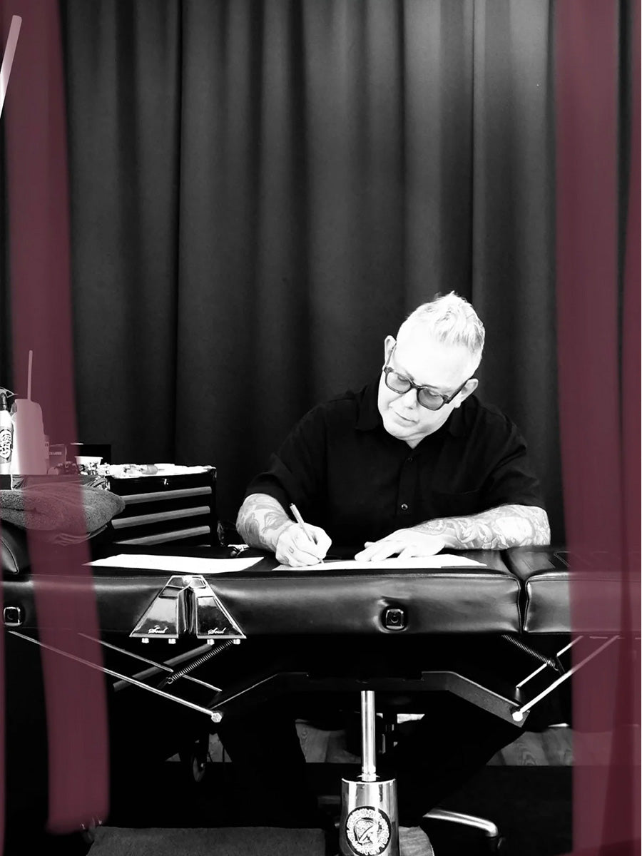 Created in collaboration with the Belgian tattoo artist and illustrator Philip Paquet, Eye Love You is a playful fresco capturing the moment two lovers meet: the glance where attraction begins. It makes us reflect on the role of our eyes in love.