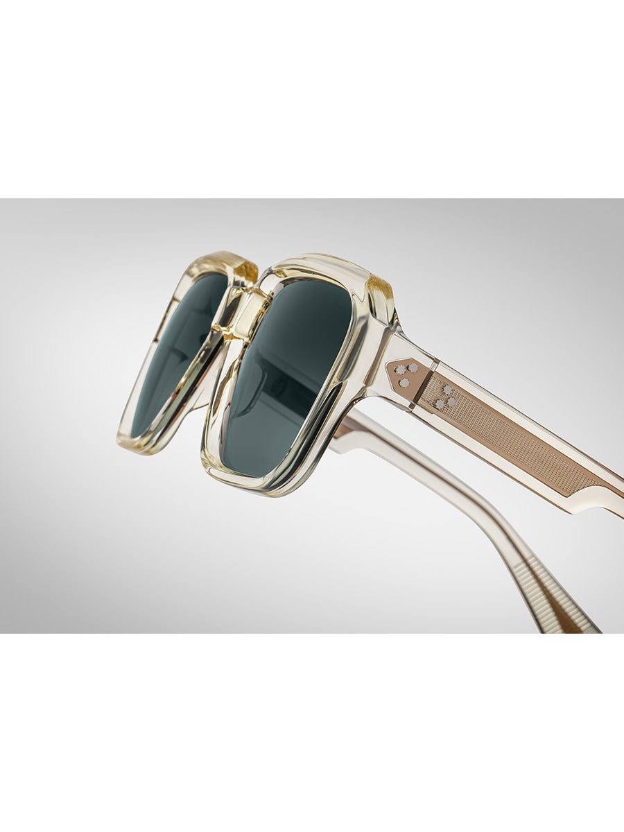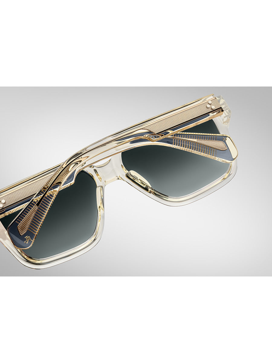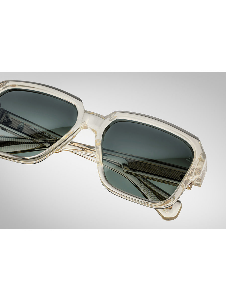 Jacques Marie Mage Alfred Brut sunglasses featuring square oversized frames handcrafted in the finest plant-base acetate with sculptural end piece and exposed wirecore with Art Deco lines.