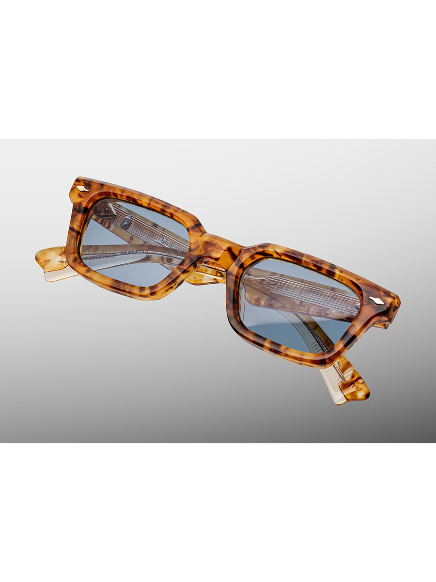 Jacques Marie Mage Casablanca Cairo sunglasses featuring rectangular frames with thin nose bridge, double-laminated temples, and the brand's signature polished metal hardware.