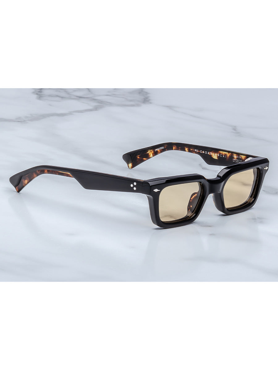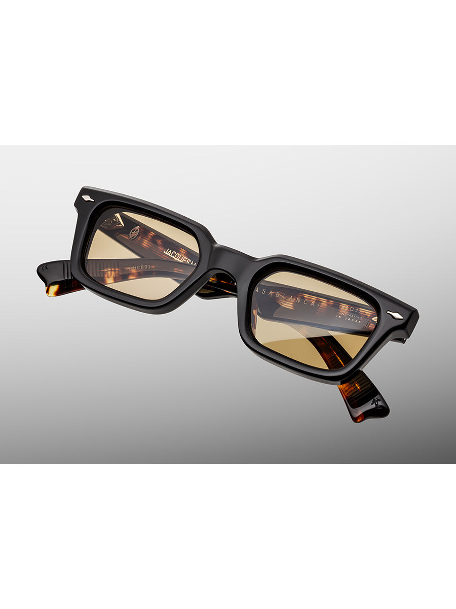 Jacques Marie Mage Casablanca Noir sunglasses featuring rectangular frames with thin nose bridge, double-laminated temples, and the brand's signature polished metal hardware.