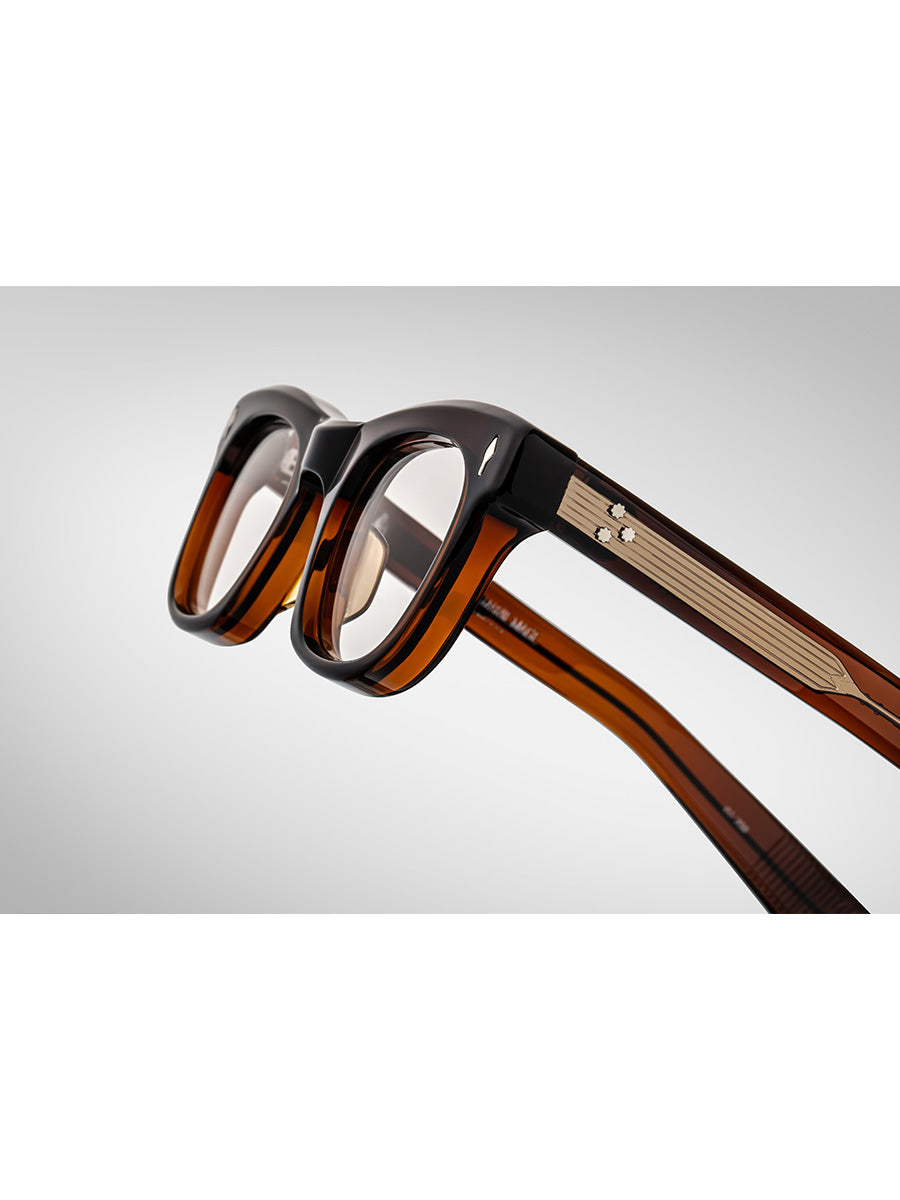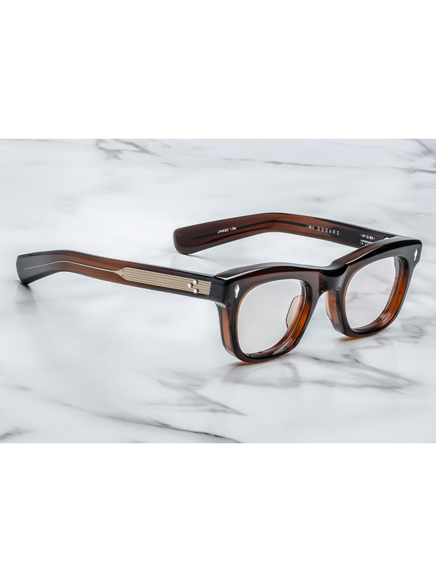 Jacques Marie Mage Godard Bloodstone eyeglasses featuring '60s inspired frames with a smaller fit and a strong brow line with softly curving paddle temples.