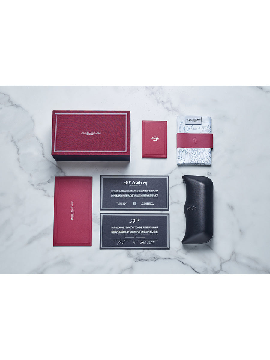 A study in offbeat sophistication, these limited-edition frames from the Jeff Goldblum for JMM collection channel his singular swagger into a refined rectangular silhouette, striking a rare balance between elegance and charisma.