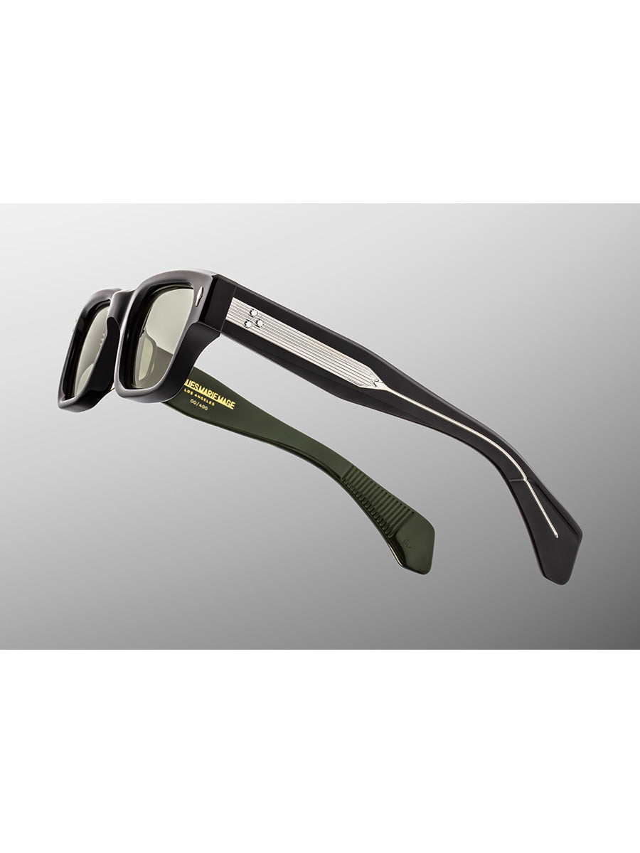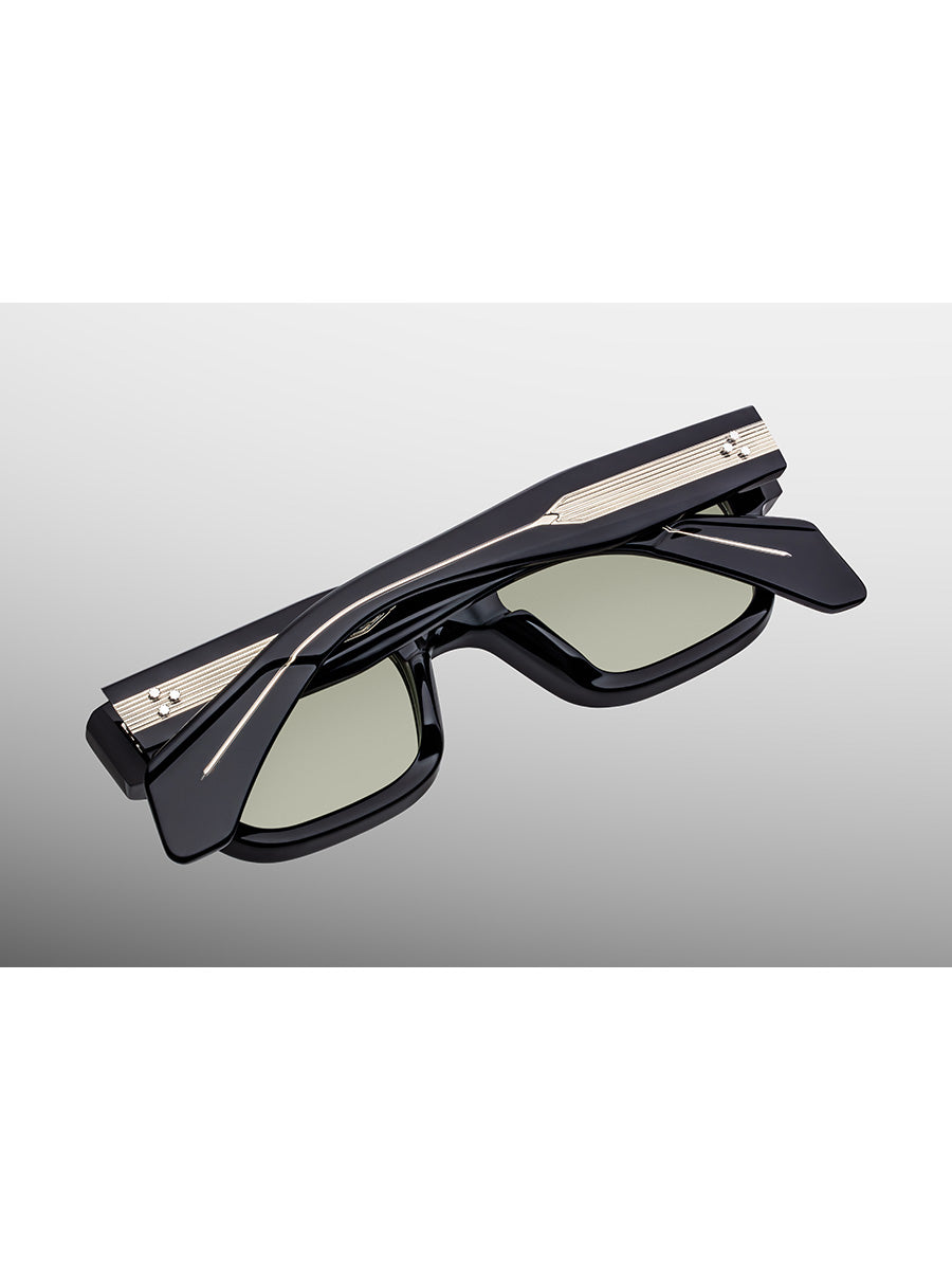 Other details include: signature arrowhead front pins in sterling silver; exposed 'classic' wirecores plated in silver palladium; custom 7-barrel hinges with refined hairline details, plated in silver palladium; spur-shaped rivet heads plated in silver palladium; inner-temple hallmarks foil-stamped in gold.