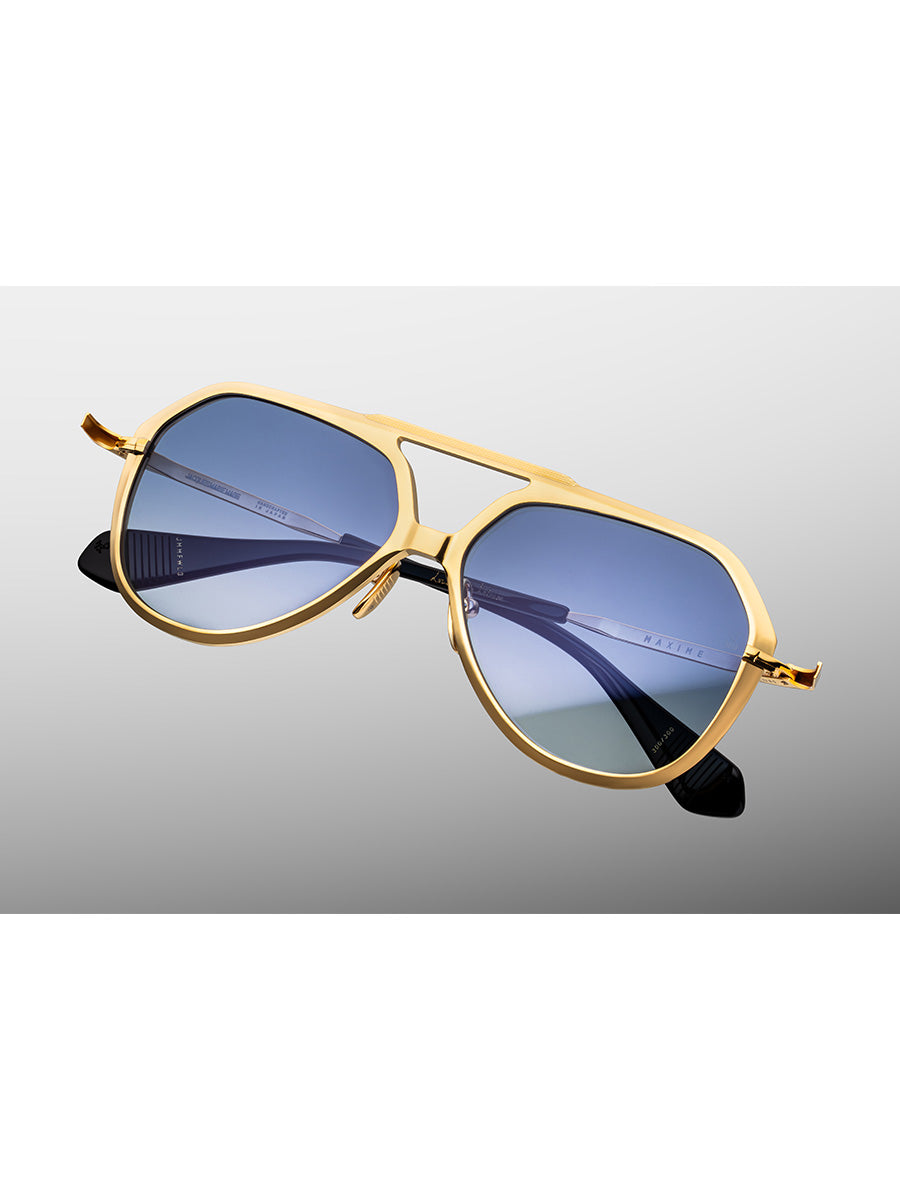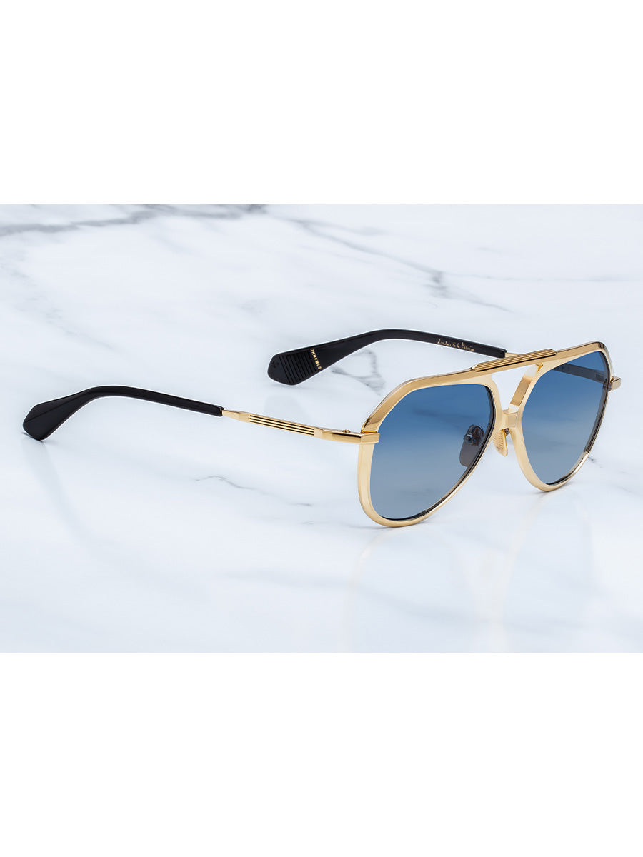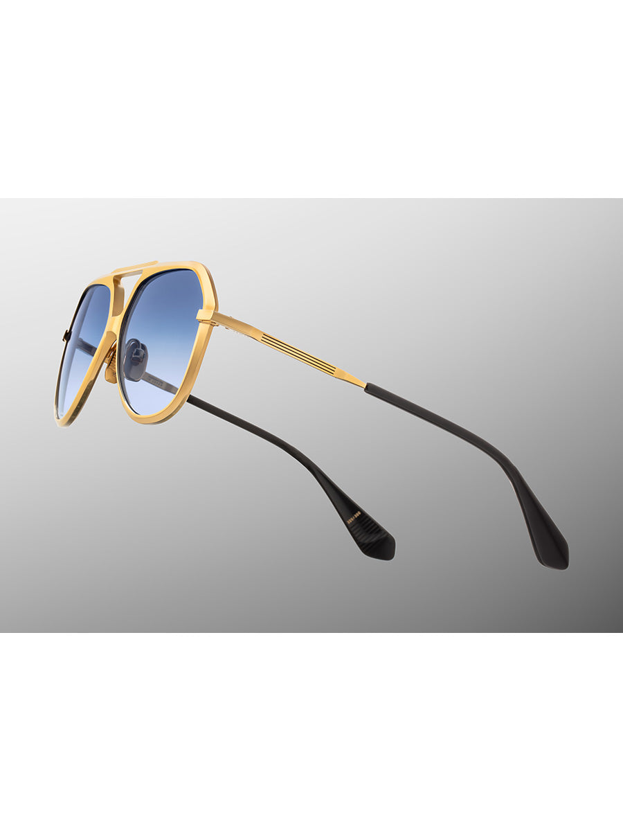 Jacques Marie Mage Louise Manhattan sunglasses featuring navigator frames made from 100% beta titanium, equipped with custom monoblock hinges and acetate temple sleeves, and finished with the JMM signature hairline-engraved details and handpainted epoxy embellishments.
