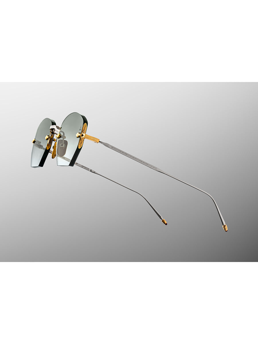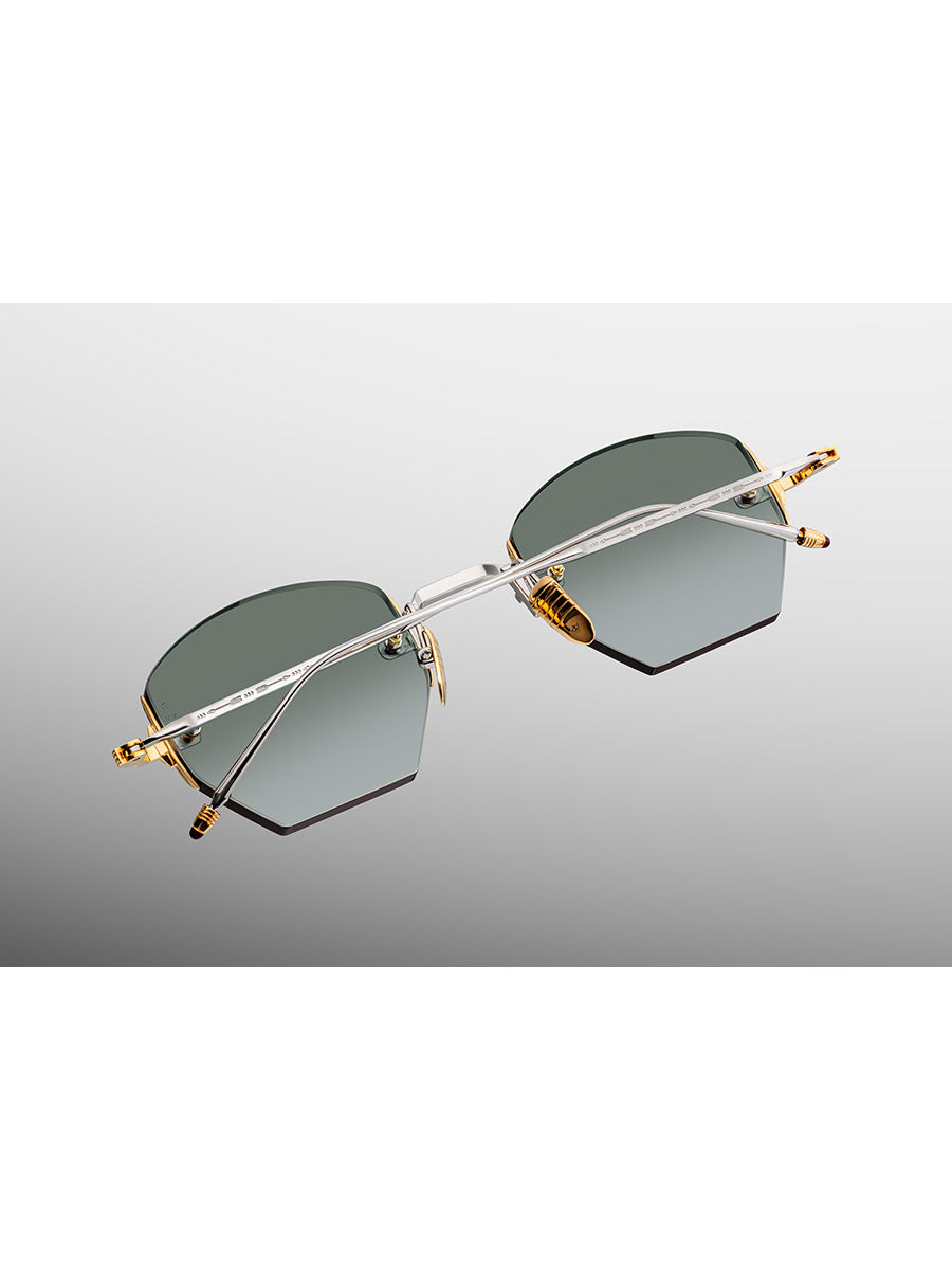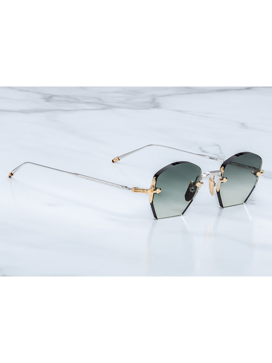 Other details include: gold hardware with arrowhead fillagree, custom gold bone hinge, custom nose pads with logo and hairline engraving, 4mm lens exclusive to JMM.