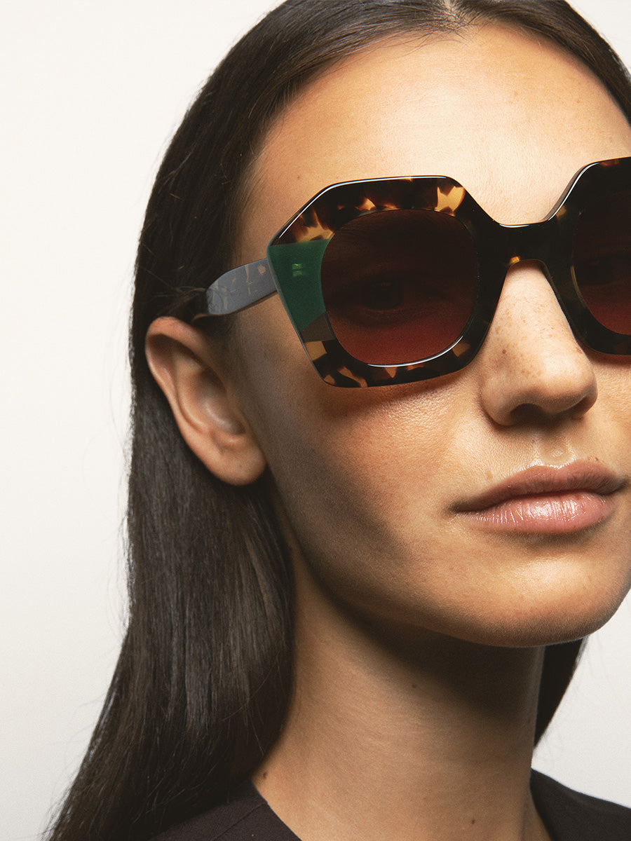 KALEOS Pavicic 5 sunglasses featuring hexagonal-shaped frames with double laminate. Other details include: acetate nose pads.