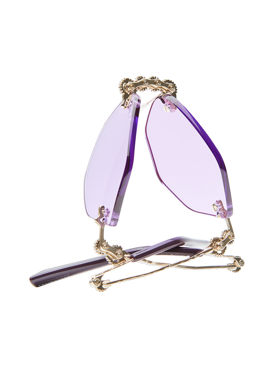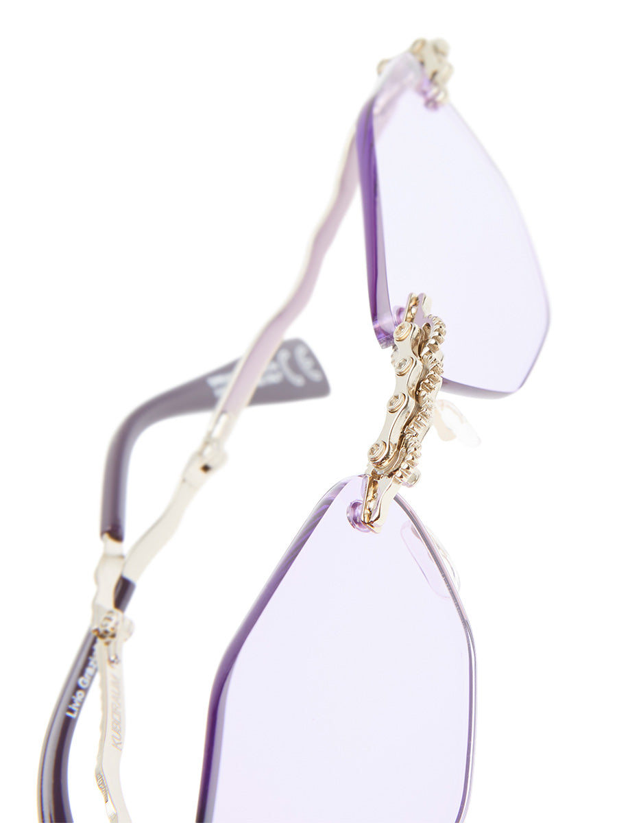 KUBORAUM Mask H48 LG sunglasses part of the “Machinery Rimless Series”, with rimless lenses, metallic handcrafted nose bridge and temples, fitted with black temple tips.
