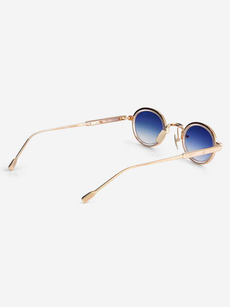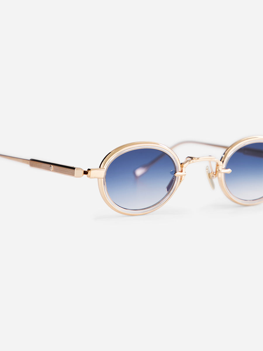 SATO Algedi-T RG-1 Rose Gold sunglasses featuring oval frames crafted from titanium with rose gold coating, and a crystal grey Takiron rim insert.