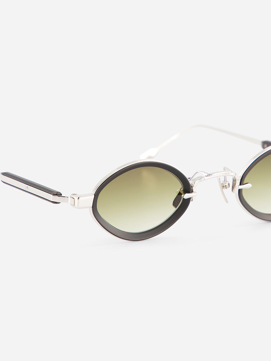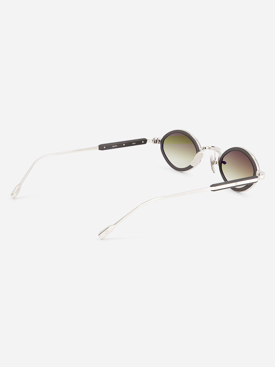 SATO KYODAI Talita P/B-1 Platinum and Matt Black sunglasses featuring oval frames crafted pure Japanese titanium.