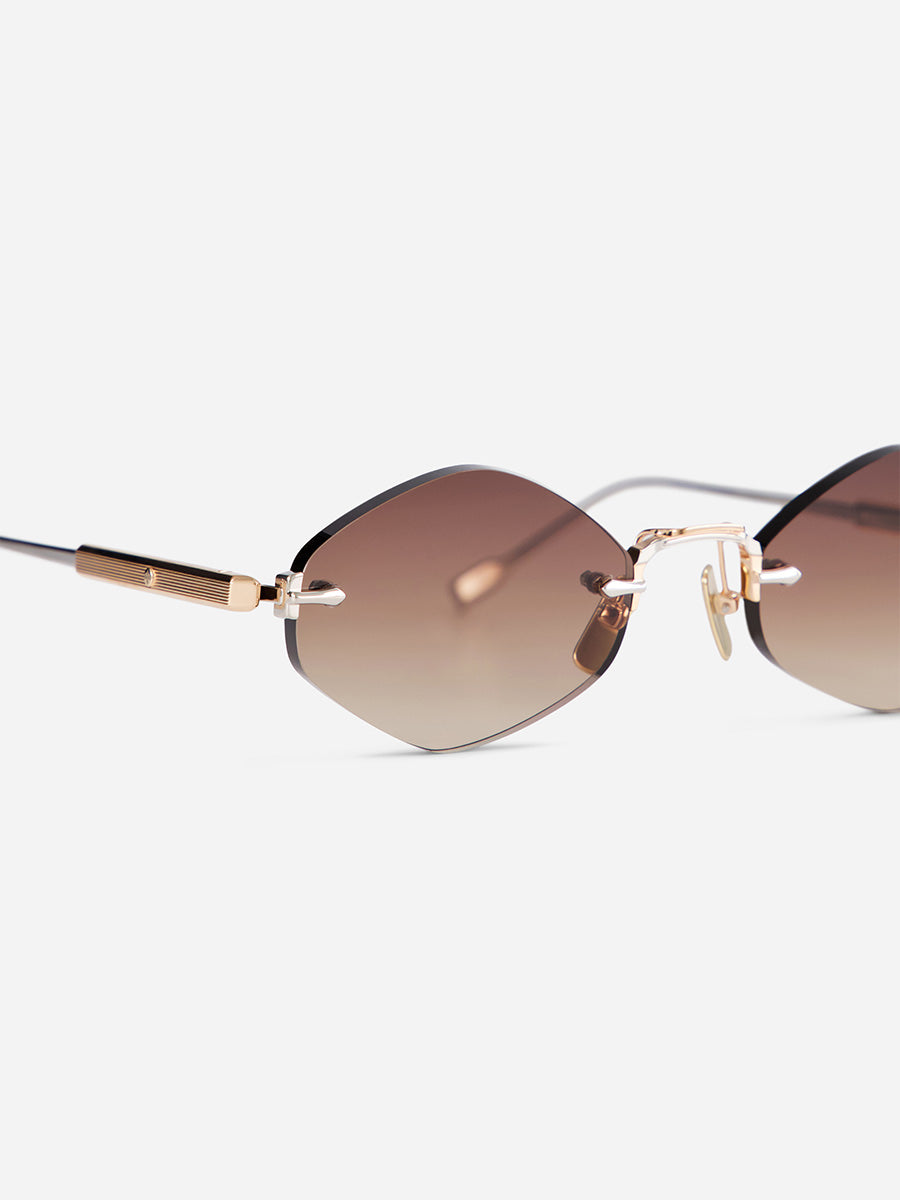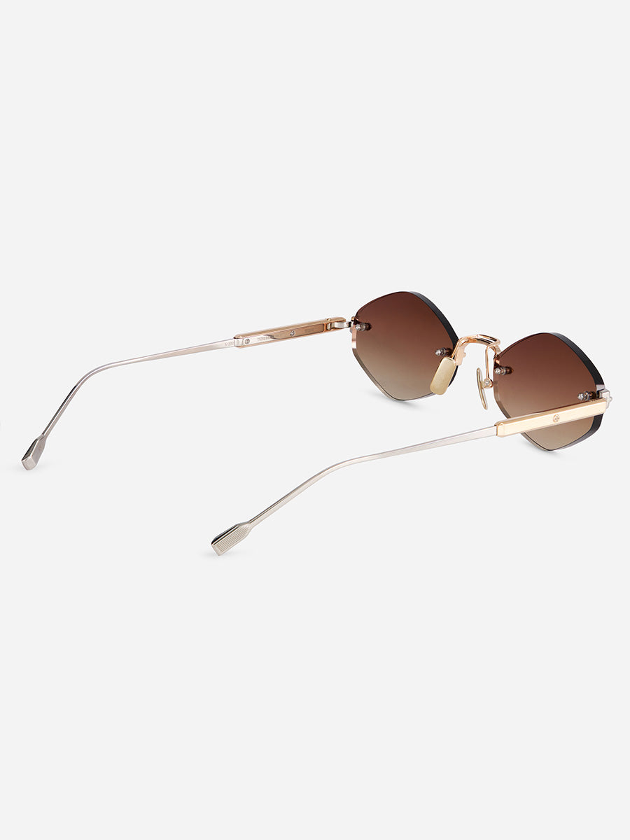 SATO Terebellum V S1204 Rose Gold and Platinum sunglasses with rimless diamond-shaped 4mm lenses fitted in rose gold and platinum coated titanium.