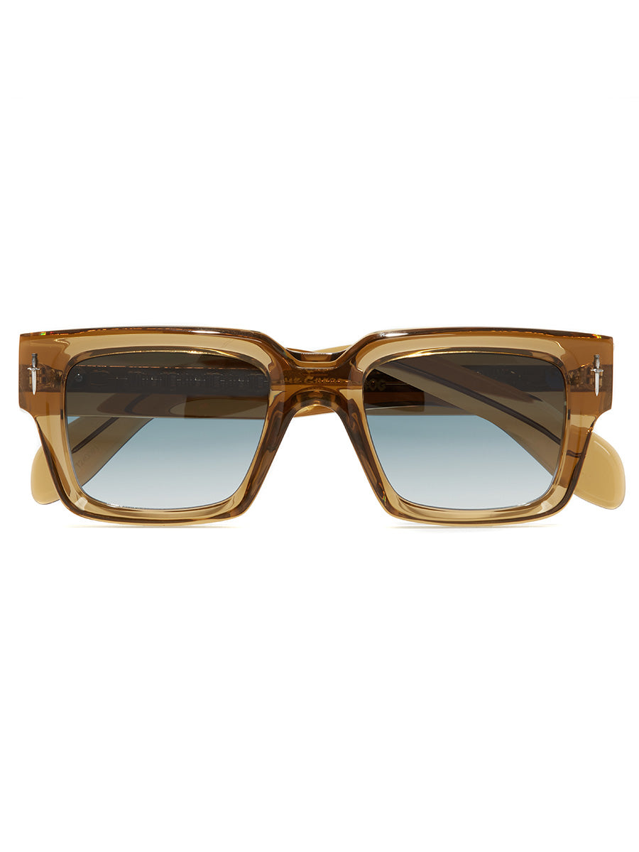 The Great Frog x Cutler and Gross Titan Crystal Tobacco sunglasses, featuring square frames with chunky temples and Sterling Silver Dagger pins. Named the ‘Titan’, it pays homage to the Gods of the Underworld.