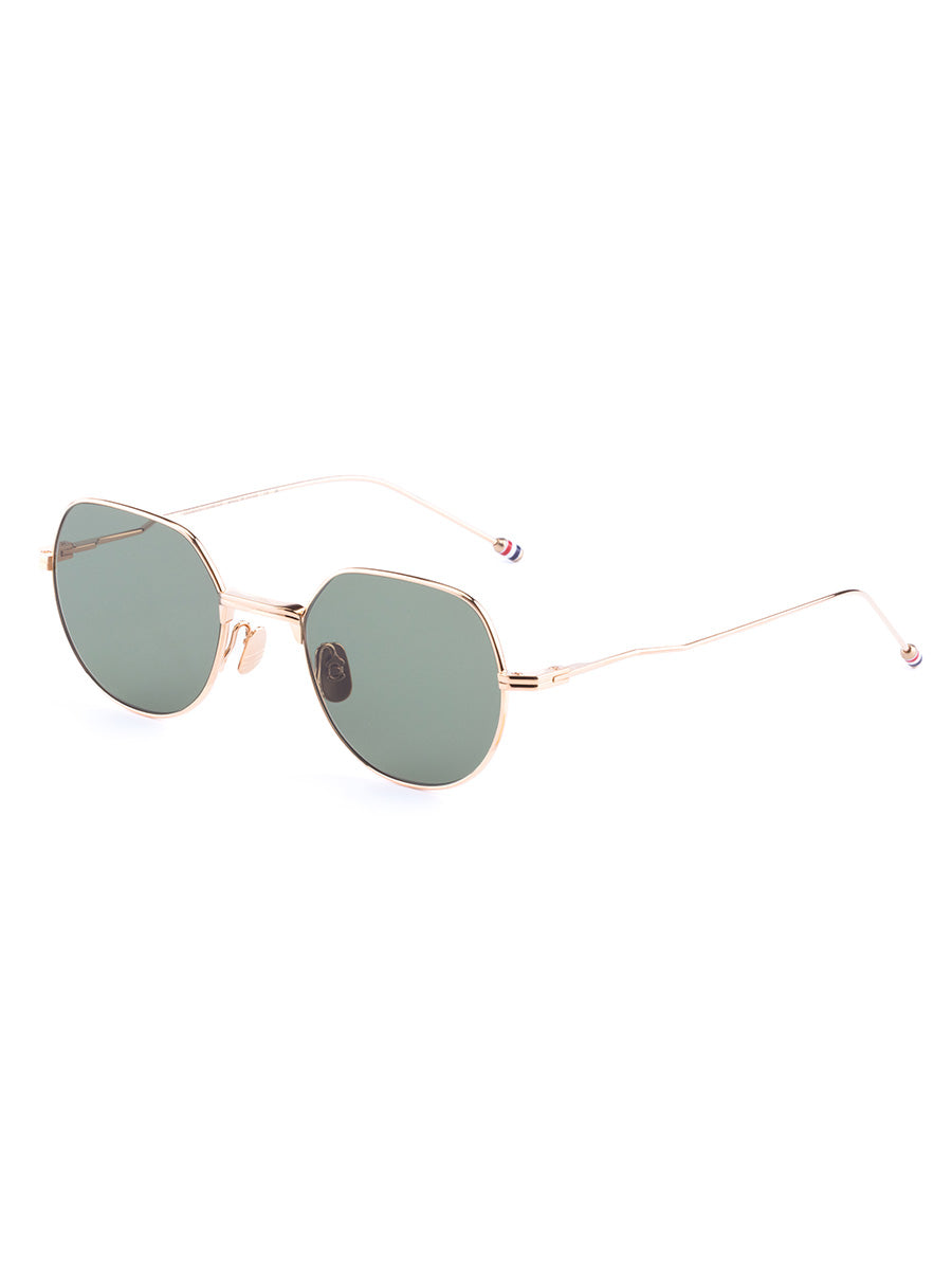 Thom Browne 935A 710 Rose Gold Titanium Round sunglasses featuring daki cho nose pads 12mm and the brand's signature stripped rivet and wire temples.