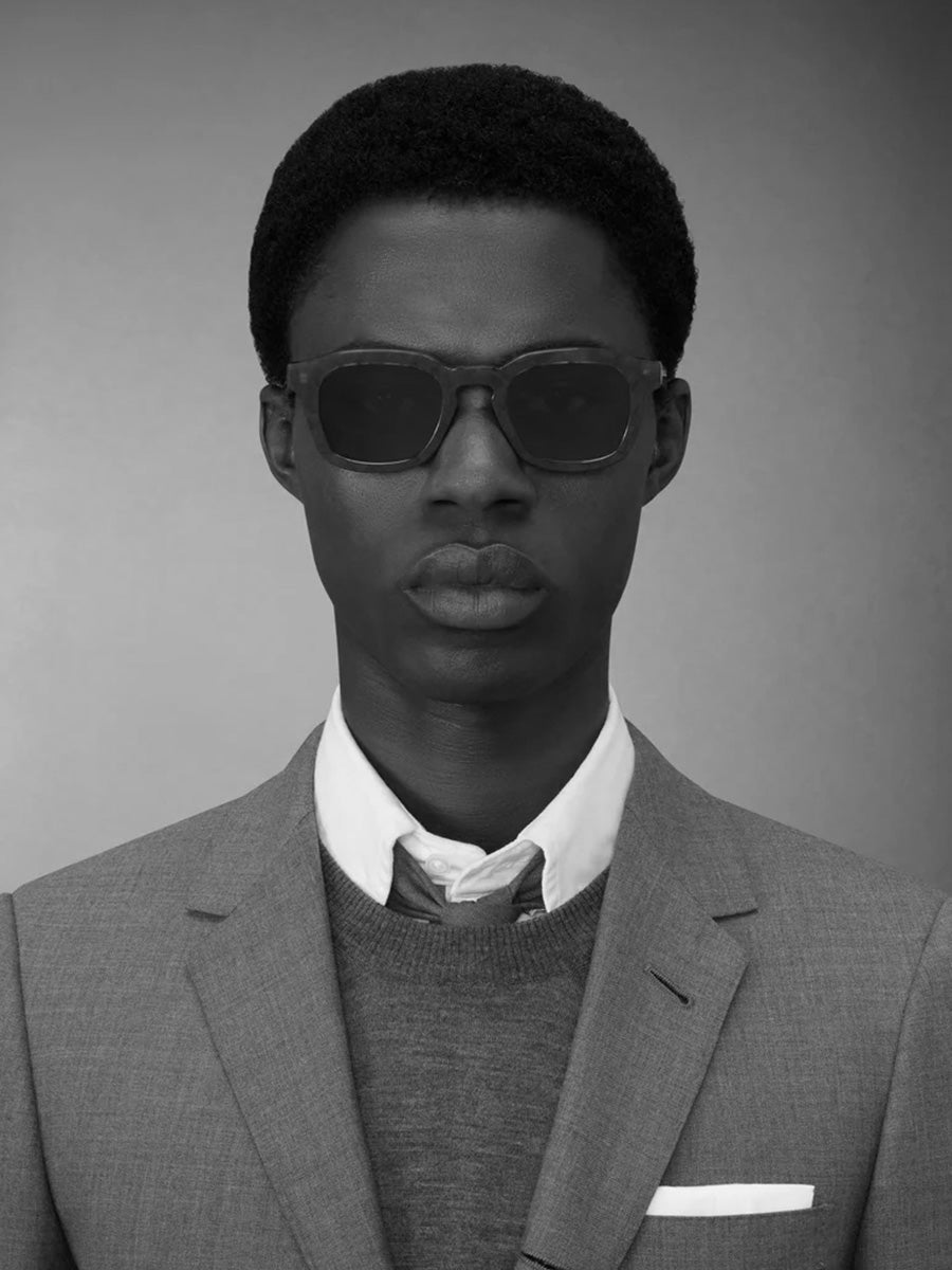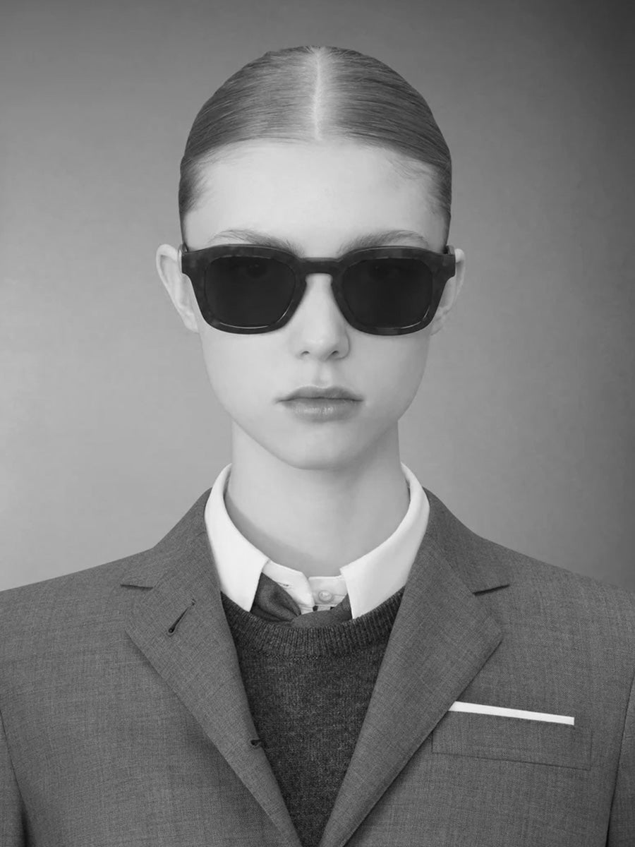 Each pair comes with Thom Browne signature black eco-leather case and grey cleaning cloth.