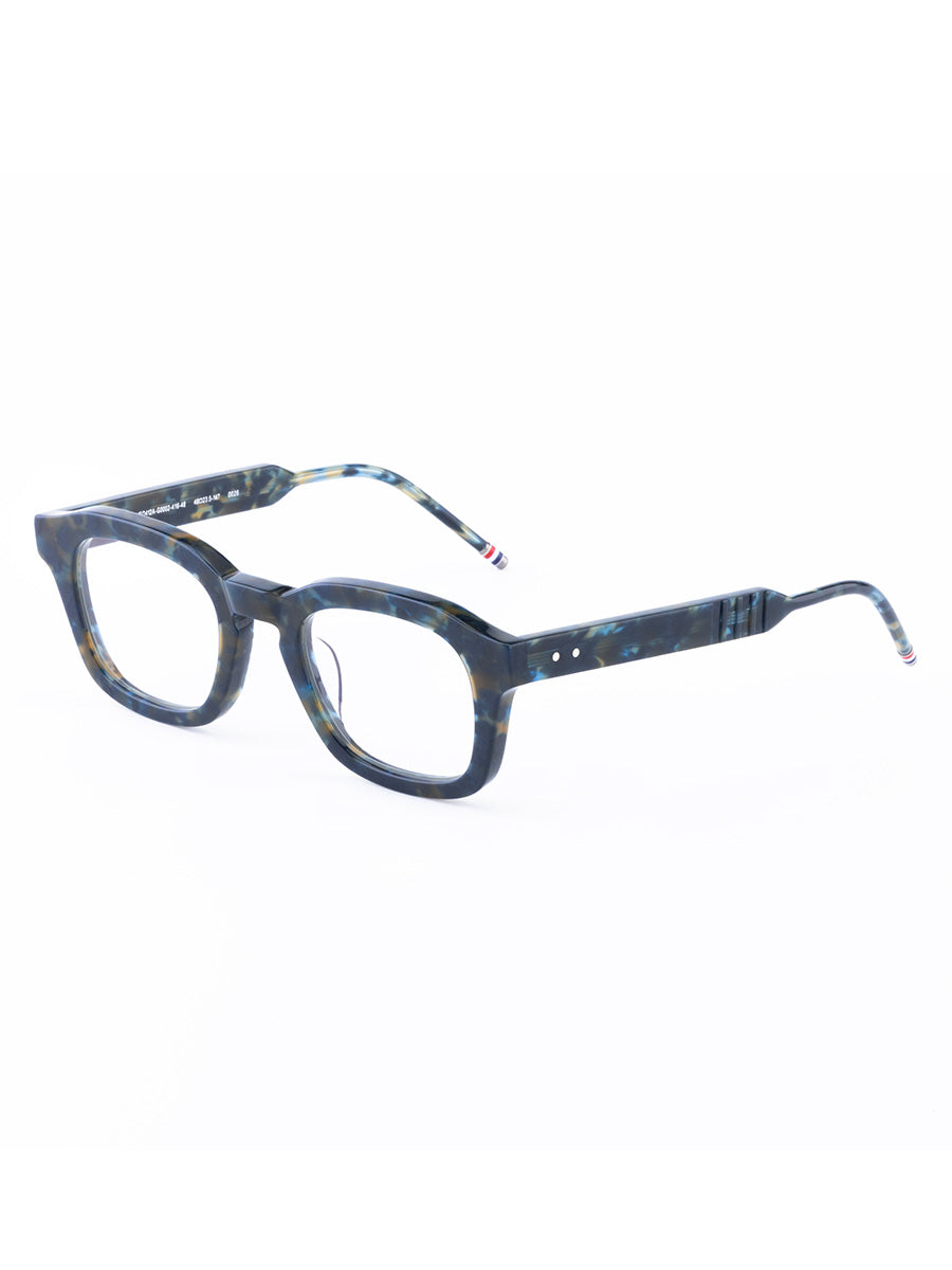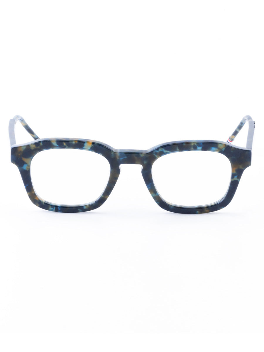 Thom Browne 412A 416 Navy Tortoise Rectangular eyeglasses with the brand's signature 4-bar and striped enamel temple tips.