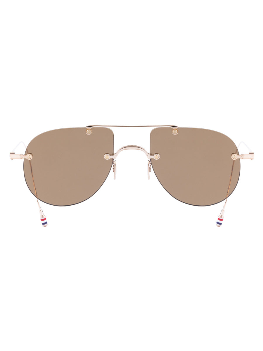 Thom Browne 939A 711 12k Gold Plated Aviator sunglasses featuring a double nose bridge and signature striped enamel temple tips.