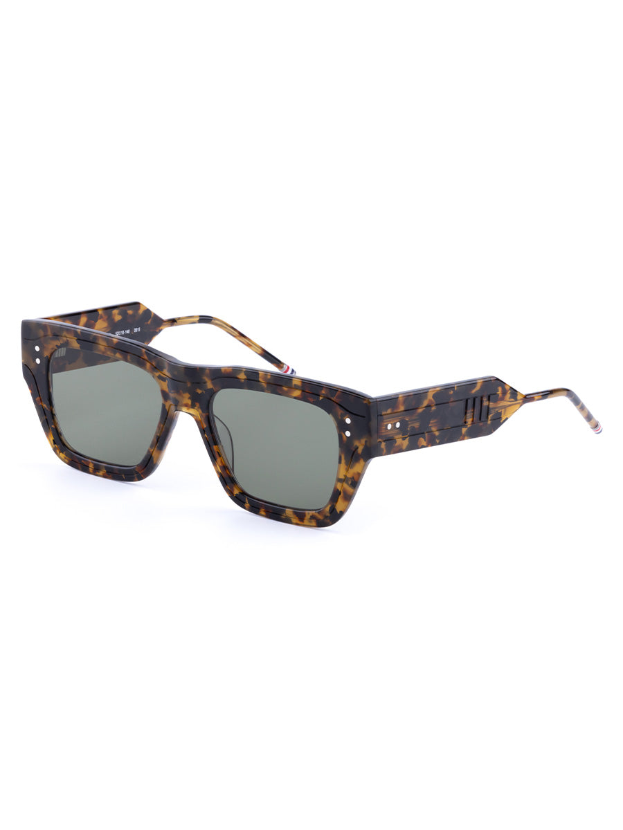 Thom Browne 947A 205 Tokyo Tortoise G15 Rectangular sunglasses featuring angular frames with extended nose pads and signature tricolor detailing at temple tips.
